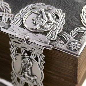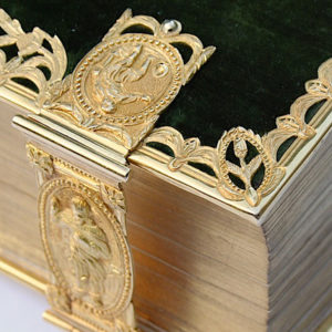 Dit is de digitale etalage van onze website met zeldzame of sierlijk bewerkte Bijbels, voorzien van edelmetalen beslag, handgekleurde titelbladen en kaarten. Pronkstukken die het hart van menig bibliofiel sneller doen slaan.
