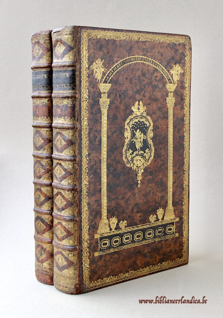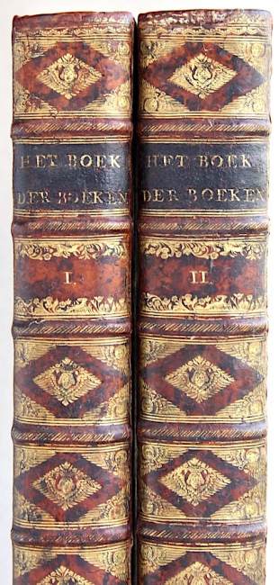 BOEKBINDERIJ: Van Damme-boekbinderij te Amsterdam (1750-1786). Deze luxe-boekbinderij dankt zijn naam aan de befaamde numismaticus en eerste Nederlandse antiquarische boekverkoper Pieter van Damme. De Amsterdamse binderij heeft voor hem veel bindwerk verricht. – Storm van Leeuwen, J. (2006); Dutch Decorated Bookbinding in the Eighteenth Century, vol. I, p. 460-499. Ruggen: rolstempels – II, XI, XX, en XXXI; stempels – 8 en 9. Platten: rolstempels – II, XX, XXVI en XXVII; stempels – 3, 7, 11, 27, 77, 85, 93, 102, 140, 141, 146, 148, 149, 156, 159 en 161.