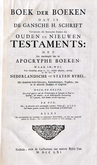 Vertaling/Benaming: z.g. Jehovahbijbel, 1ste uitgave.