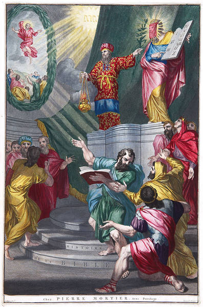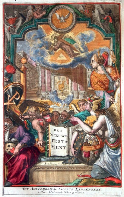 Laatste grote Statenbijbel te Amsterdam uitgegeven door Paulus Aertsz. van Ravesteyn in 1654. Op de titelgravure een vermelding van het Tetragram boven de titelpoort. Deze Bijbel bevat extra prentbladen met gravures van Cornelis Danckerts II (1664-1717). Hieronder volgen de gravures waarin het Tetragrammaton verwerkt werd: