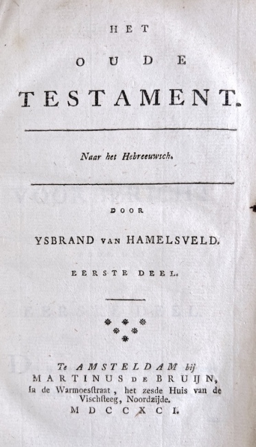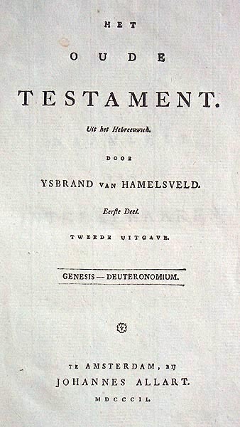 Titel: DE BIJBEL. Vertaald, omschreven… Vertaling/Benaming: Willem A. van Vloten Drukker/Uitgever: J. Allart, Amsterdam / van Paddenburg, Utrecht Gebruik Godsnaam: ‘Jehovah’ in het Oude en Nieuwe Testament